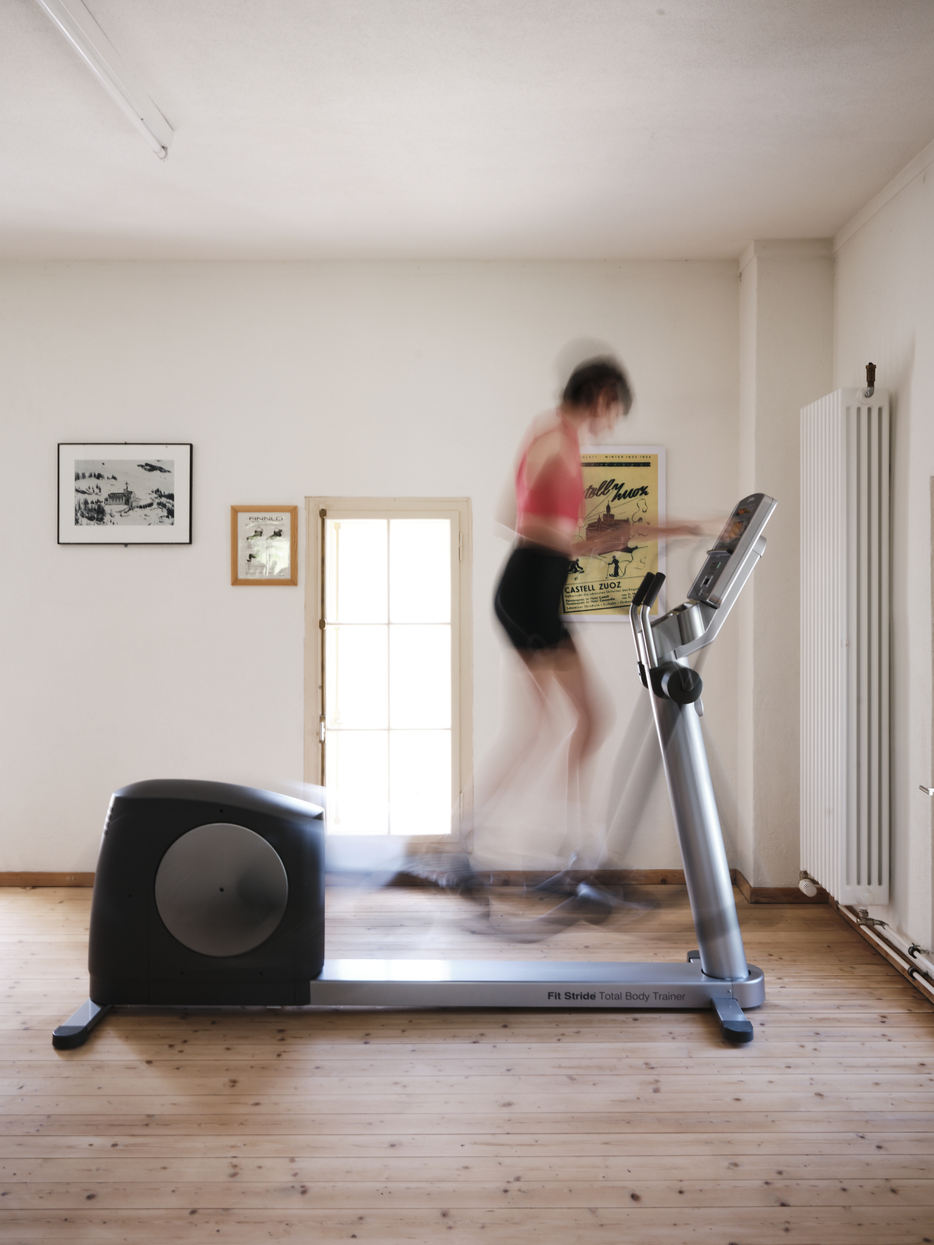 Our fitness room is located high up in the Castell tower. Probably the workout with the best view in the whole of the Engadin!