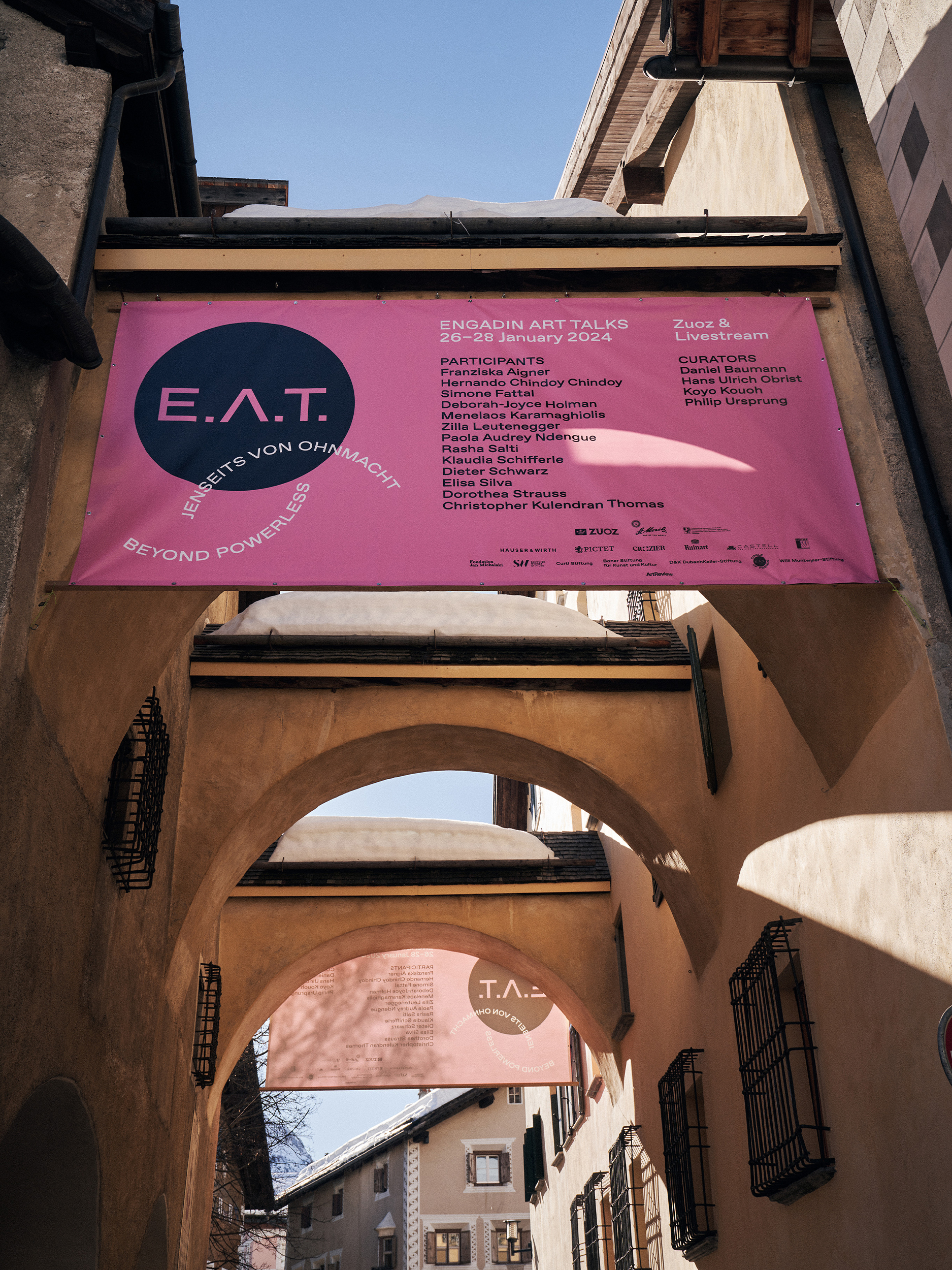 Engadin Art Talks (E.A.T.) ist das Zuozer Forum für Kunst, Architektur, Design, Literatur und Innovation. Eine offene Gesprächskultur, Partizipation und internationale Akteure aus Kunst sowie Kultur prägen den Anlass. Hier wird die Gegenwart verhandelt um die Zukunft zu erahnen.