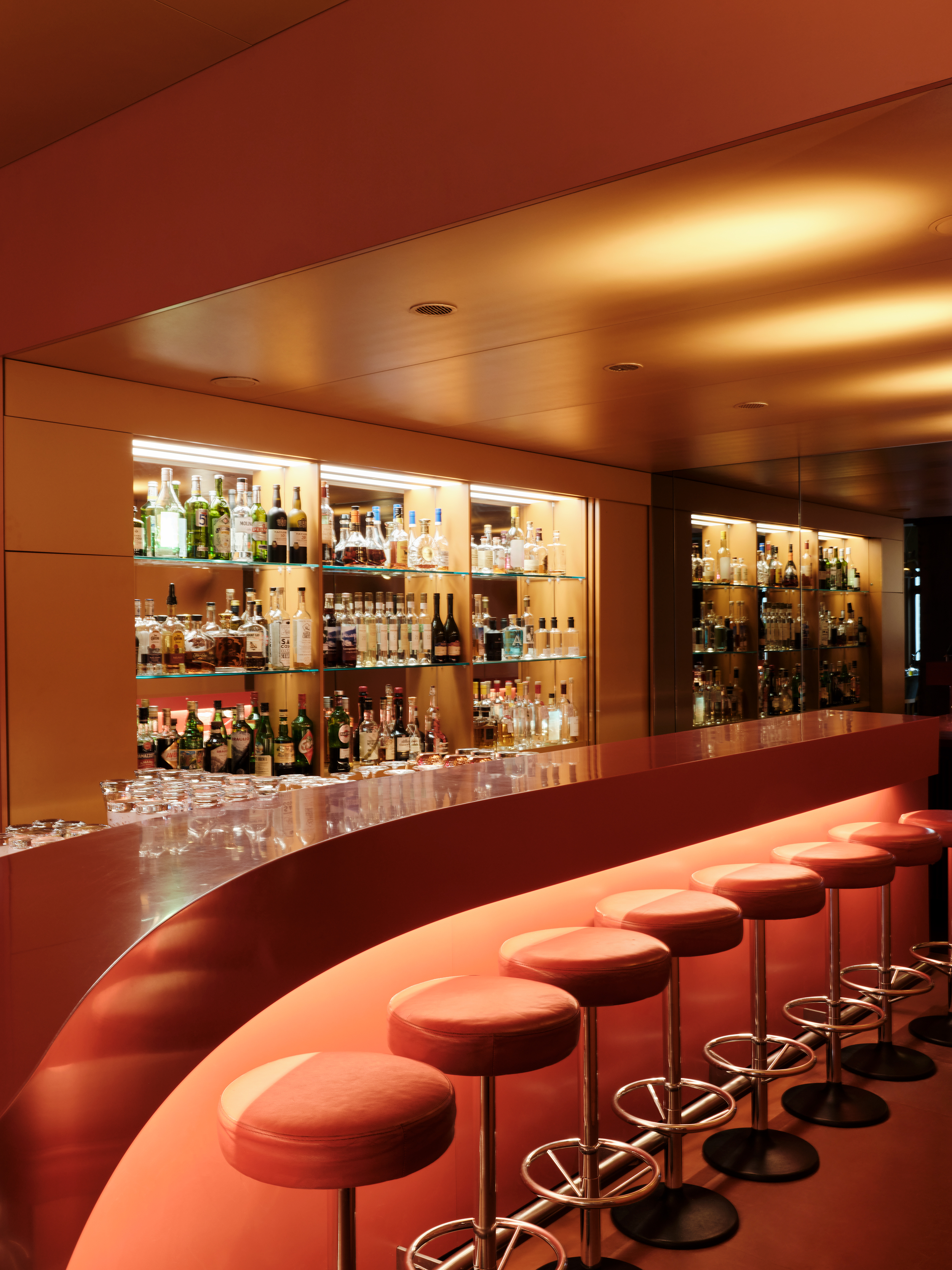 Bar und Kunstwerk in einem, hat die Rote Bar eine besondere Anziehungskraft auf Besuchende. Ein gebührender Anfang und Schlusspunkt für ihre Gesellschaft.