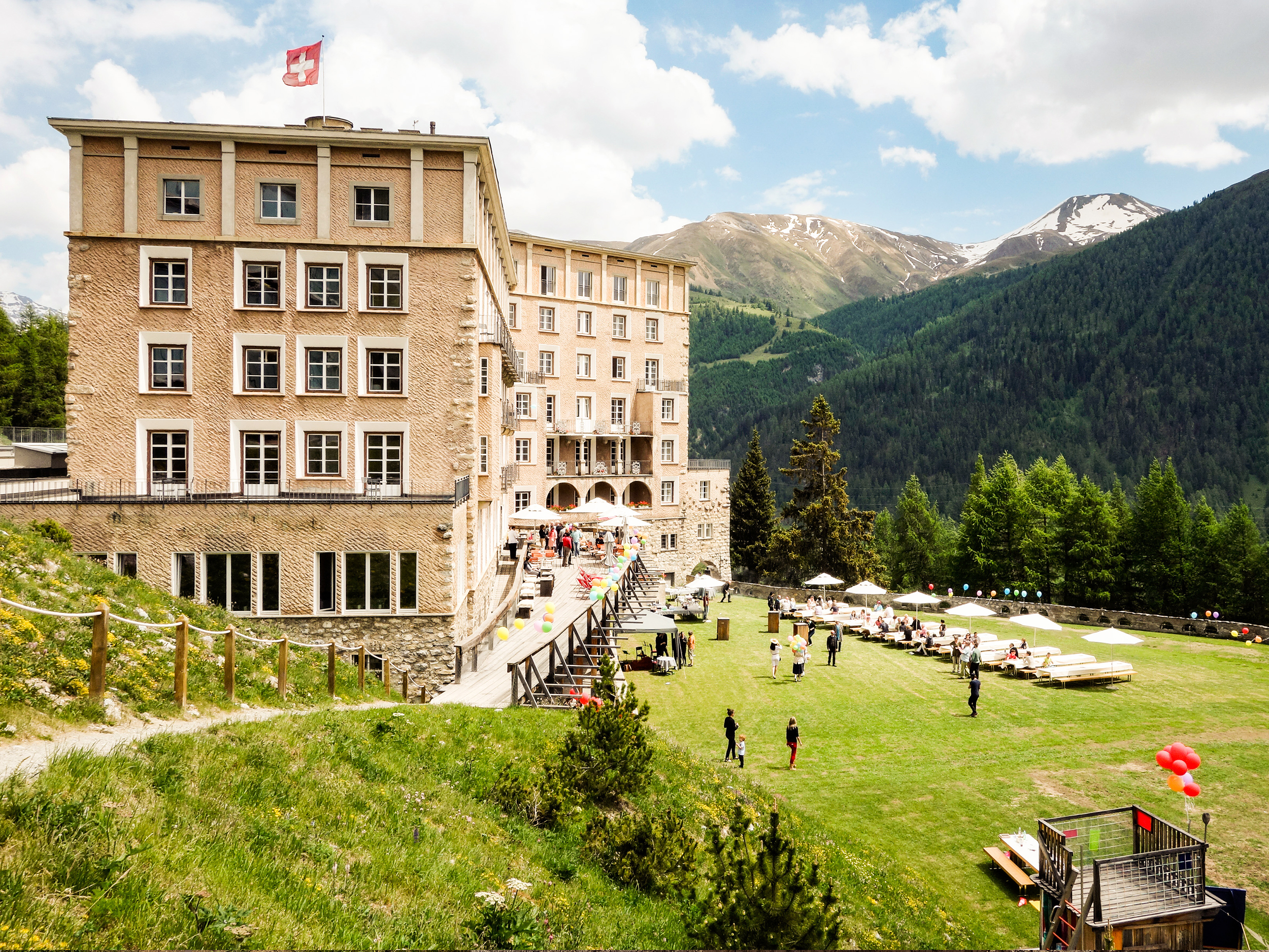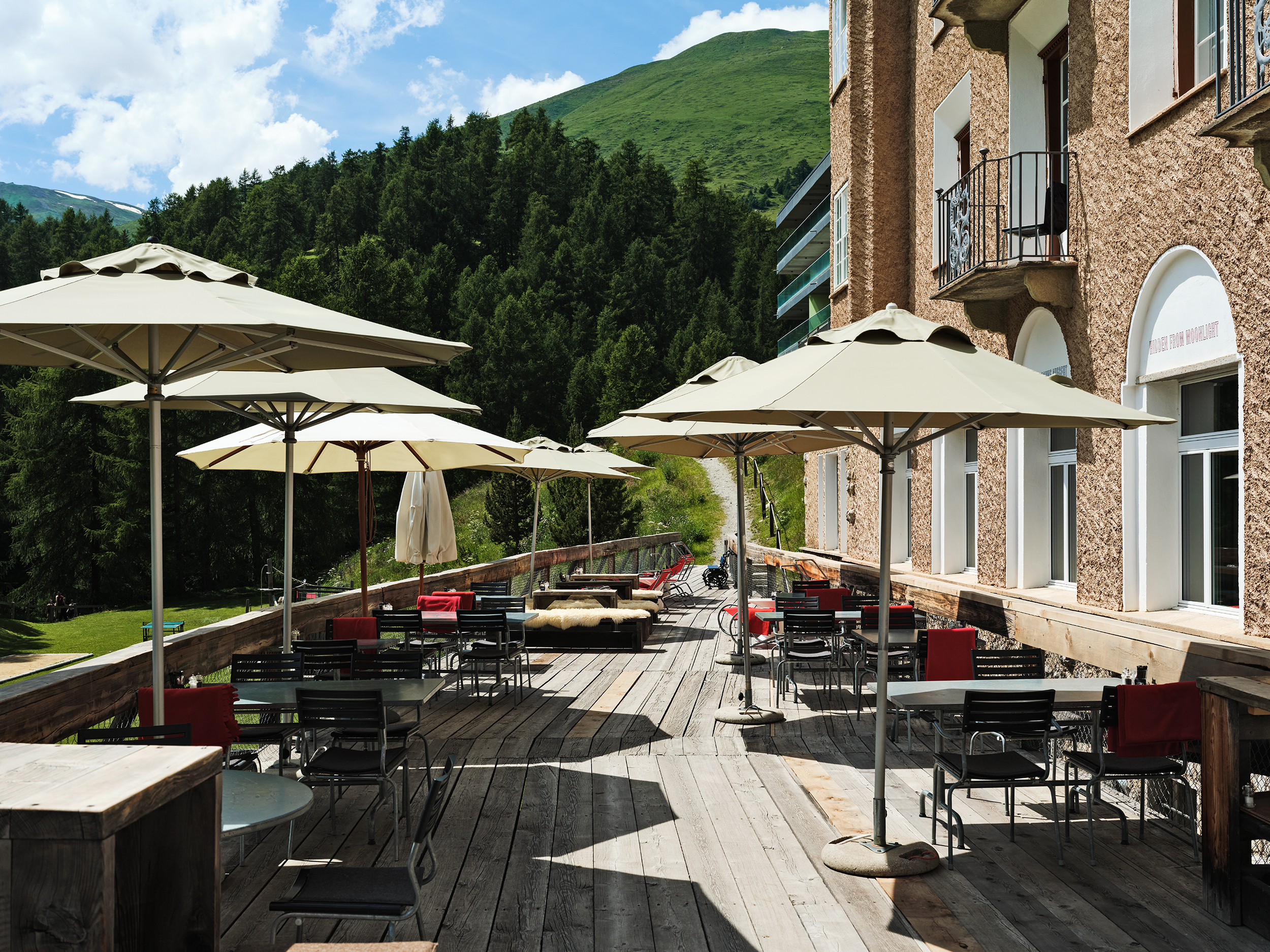 Auf der Terrasse von Tadashi Kawamata scheint die Engadiner Sonne am schönsten. Mit der umliegenden Bergwelt als Kulisse sind grosse Momente vorbestimmt.
