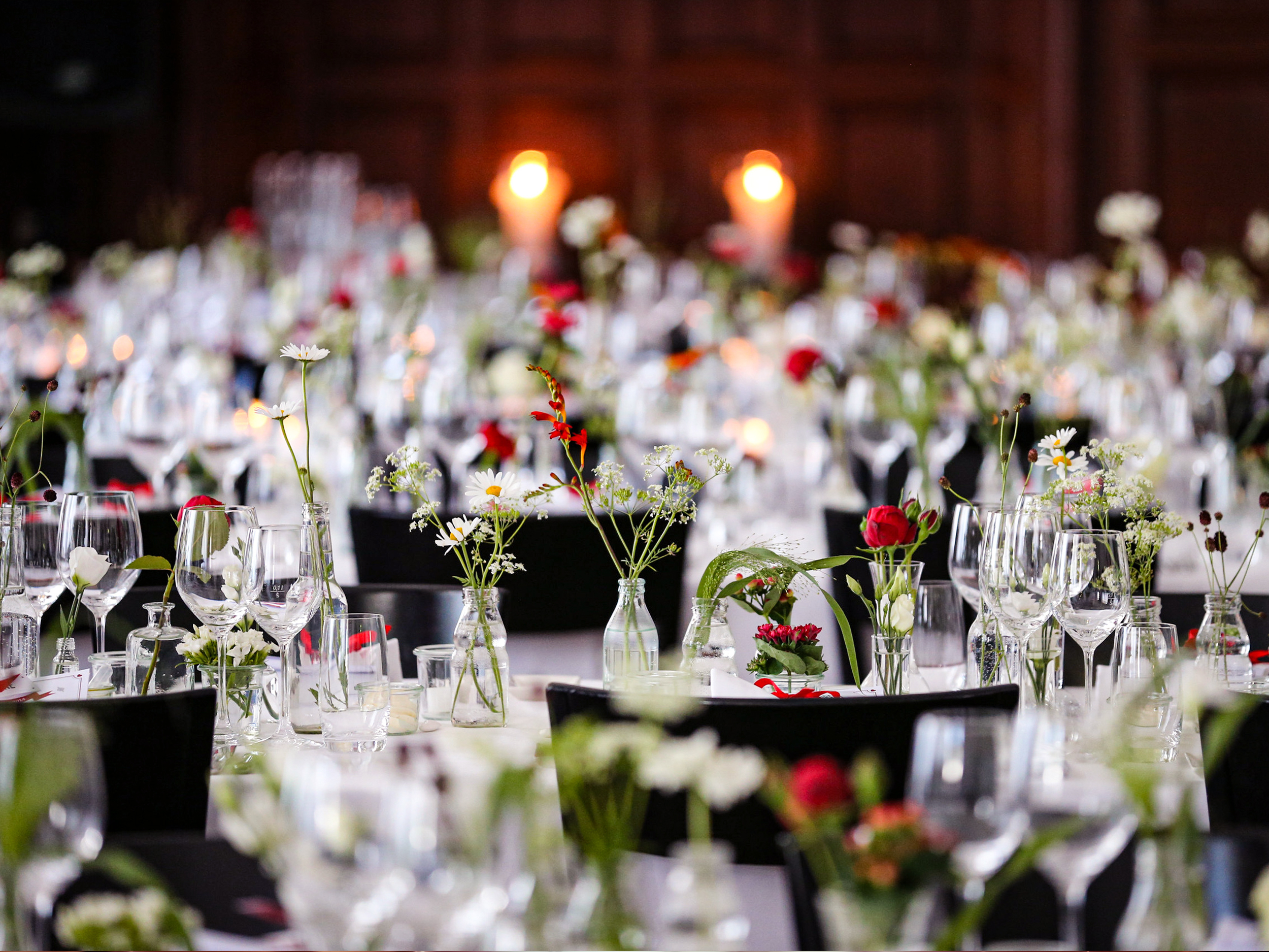 BANKETT: 80 Personen an runden Tischen, 130 Personen an langen Tischen