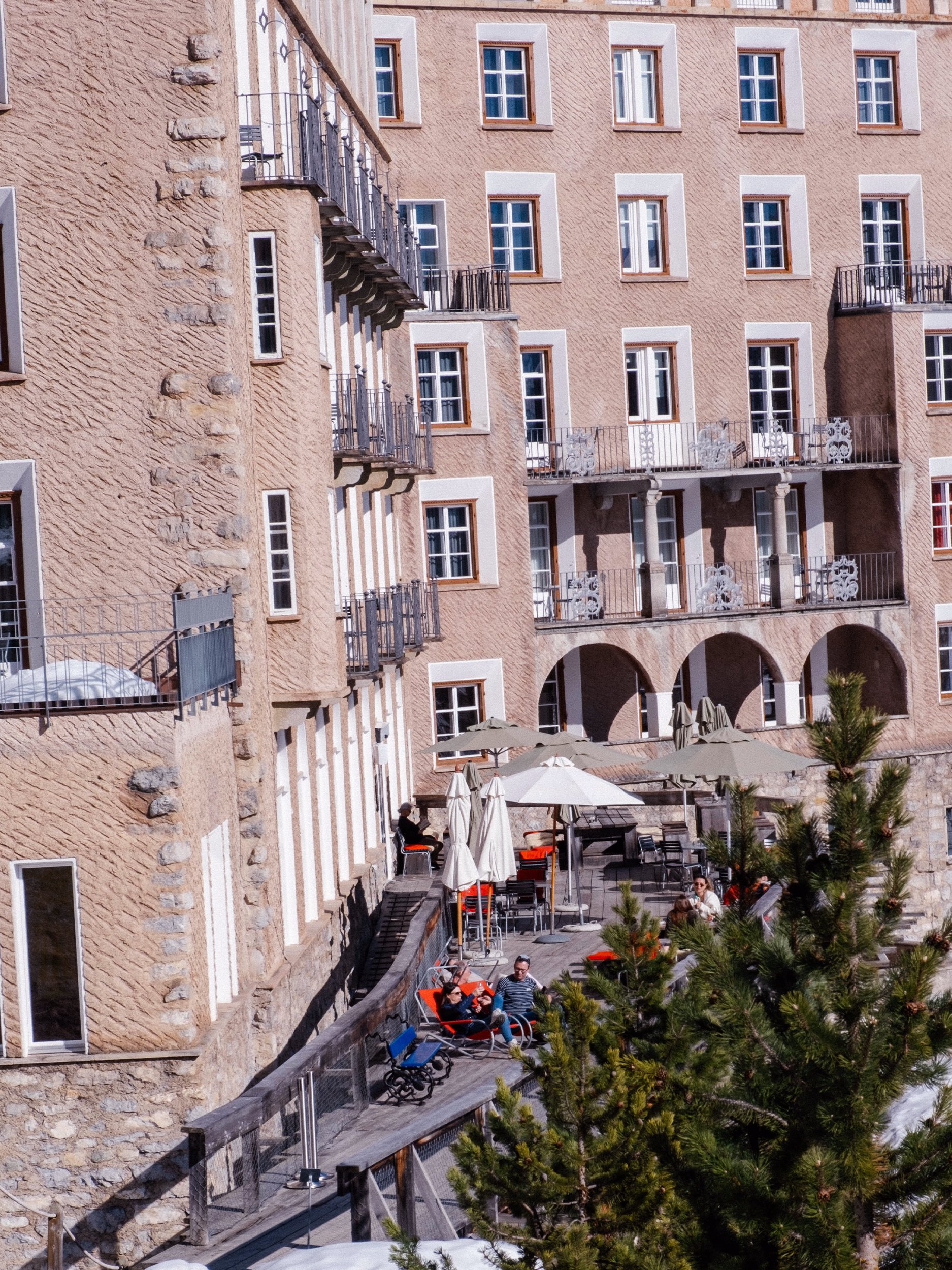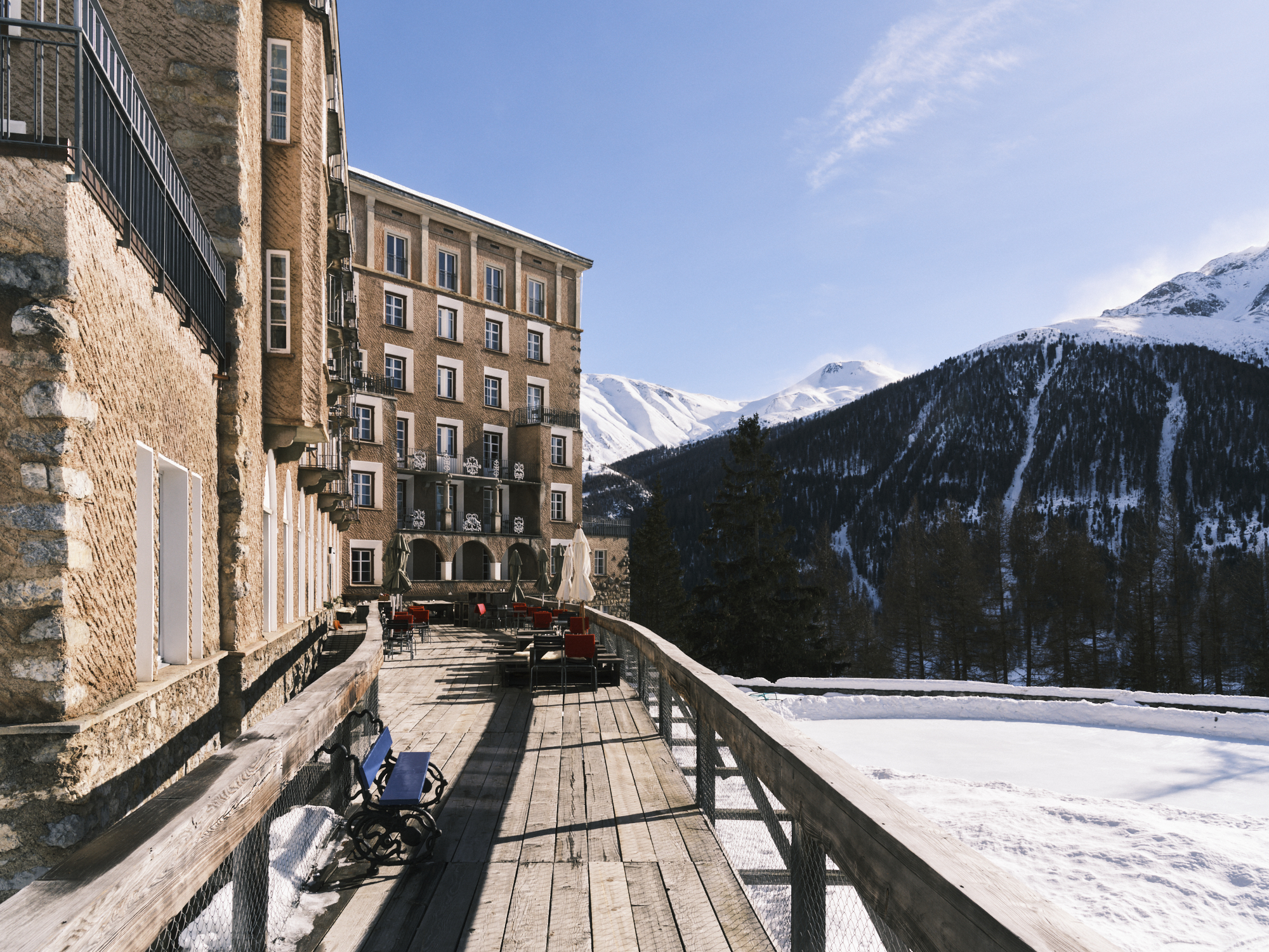 Die Terrasse von Tadashi Kawamata ist Kunstwerk und Erfahrung. Die aus Holz gefertigte Plattform ist einer der schönsten Sonnenplätze im Engadin. Der Blick ins weite Tal und auf die gegenüberliegenden Berghänge zeigt die Engiadina von ihrer schönsten Seite.