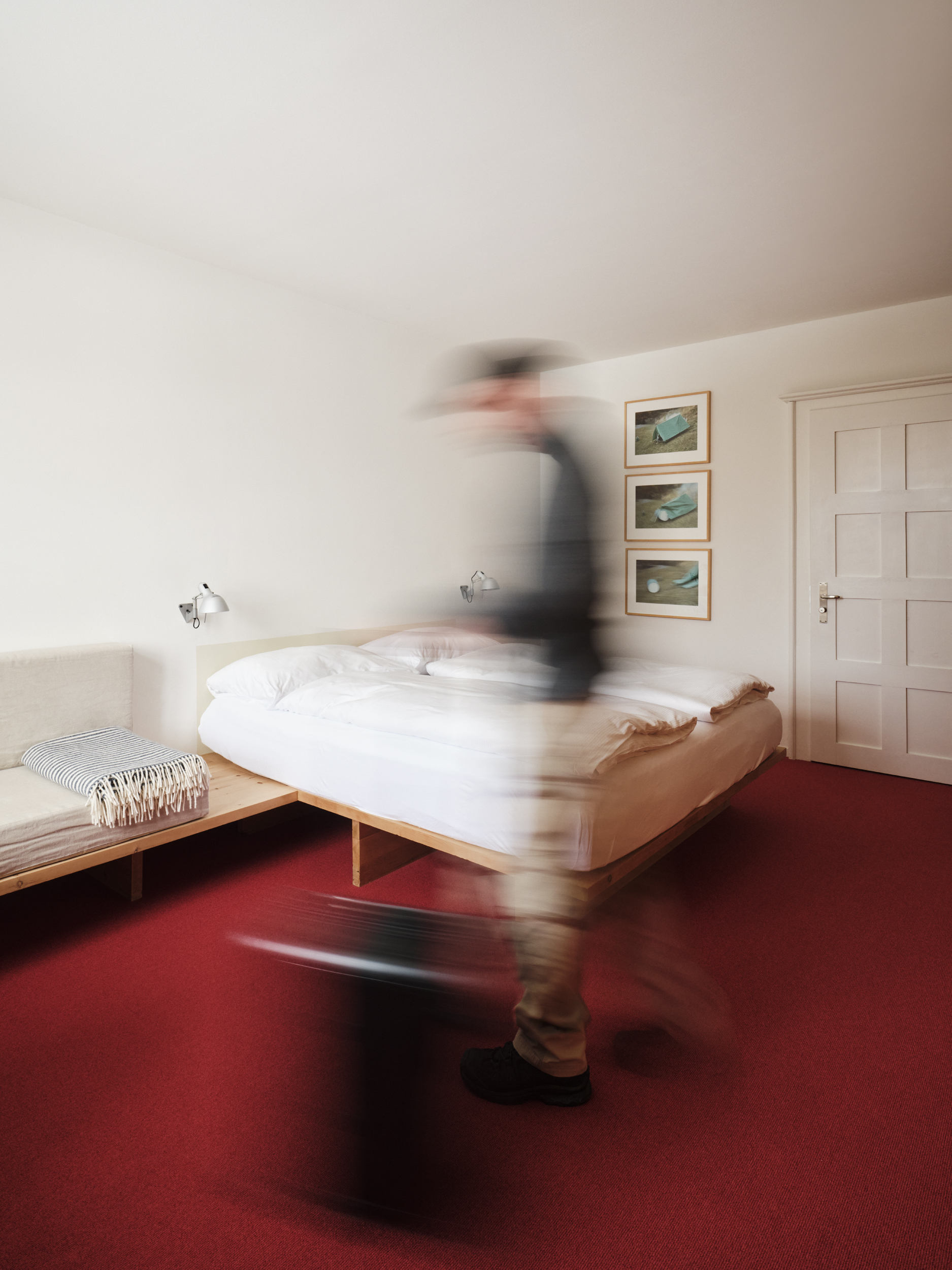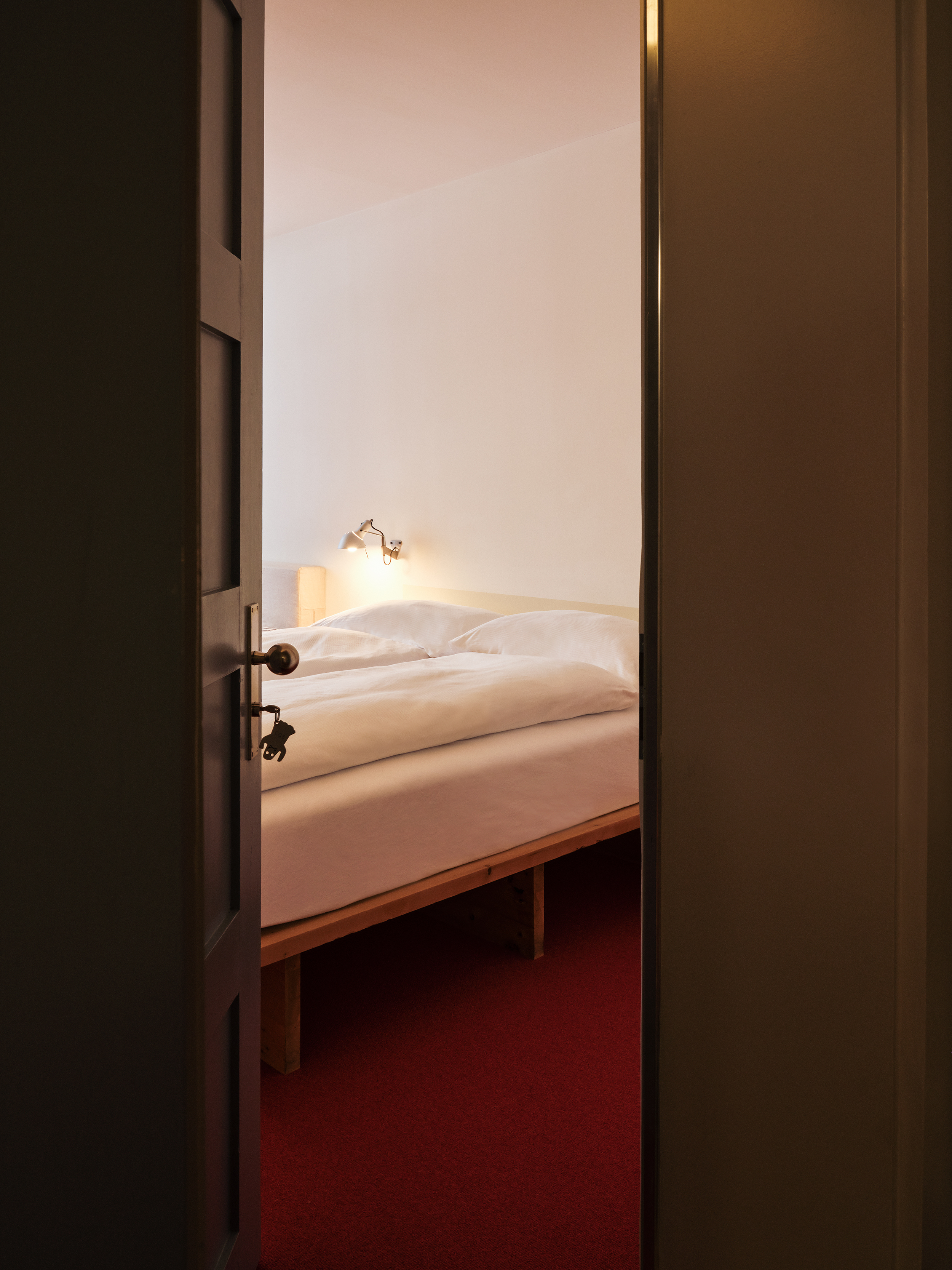 Die Medium Zimmer wurden vom St. Moritzer Architekten Hans-Jörg Ruch gestaltet und sind mit angenehm duftendem Engadiner Arvenholz. Auf einer Fläche von 24 m² bieten sie einen herrlich weiten Ausblick: im Sommer auf die Alpwiesen und im Winter auf das Skigebiet Zuoz.