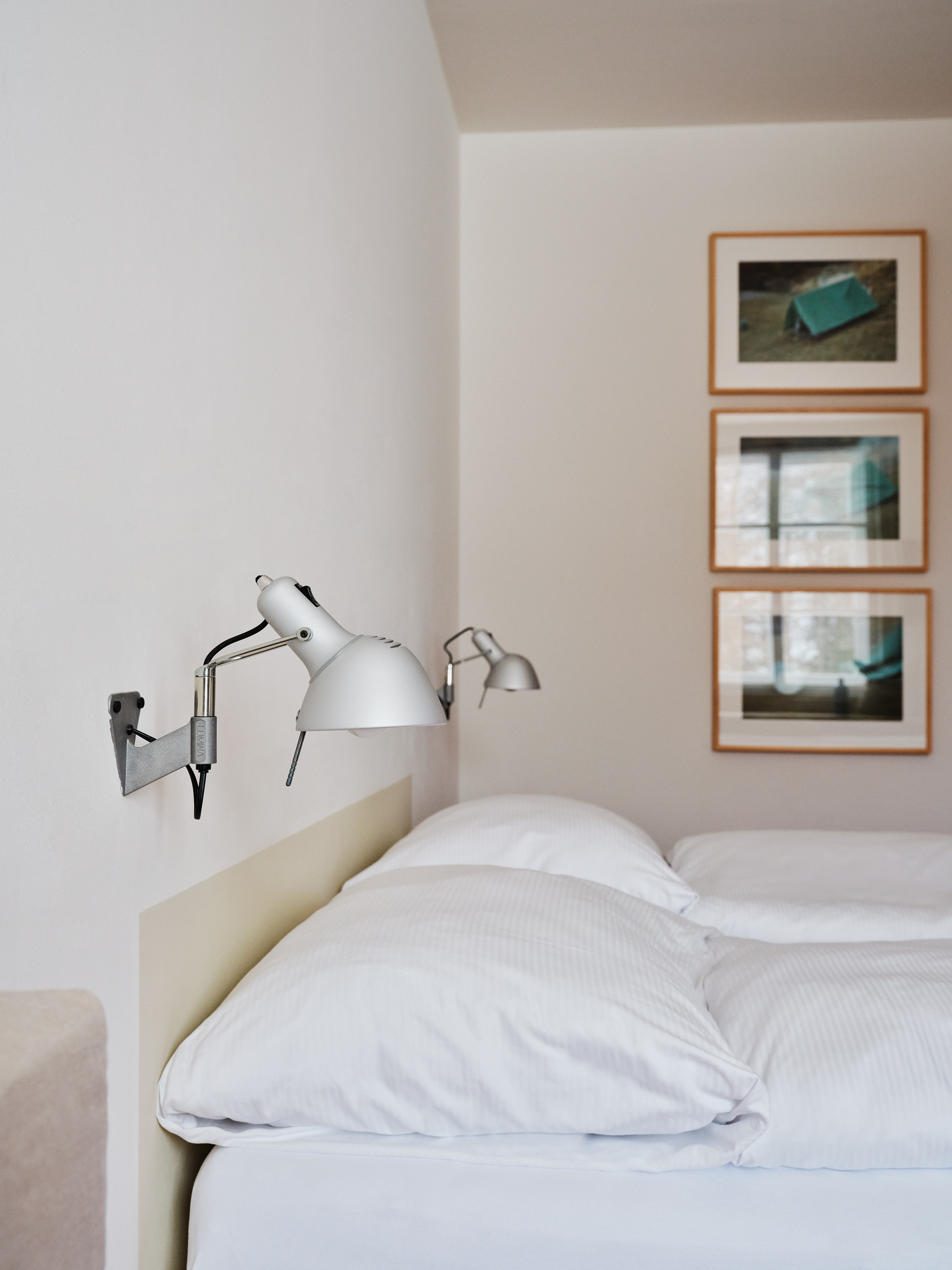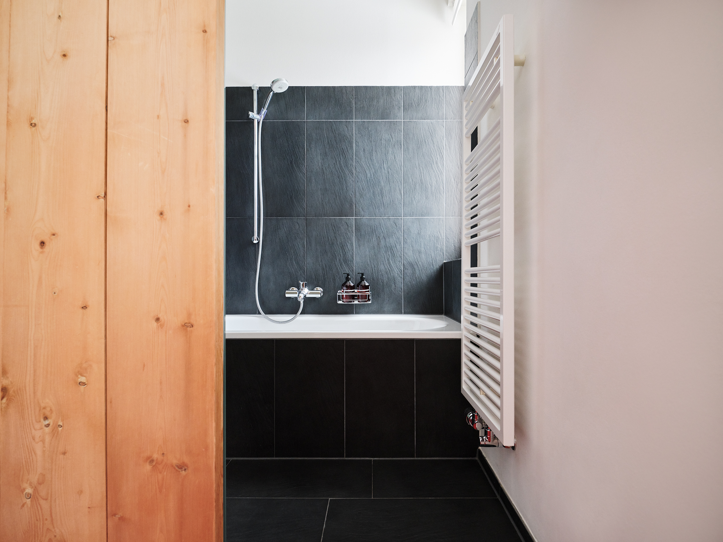 Sie bieten alles für einen angenehmen Aufenthalt: Bett, Schreibtisch, gepolsterte Sitzbank, eine geräumige Garderobe sowie Badezimmer mit Badewanne.