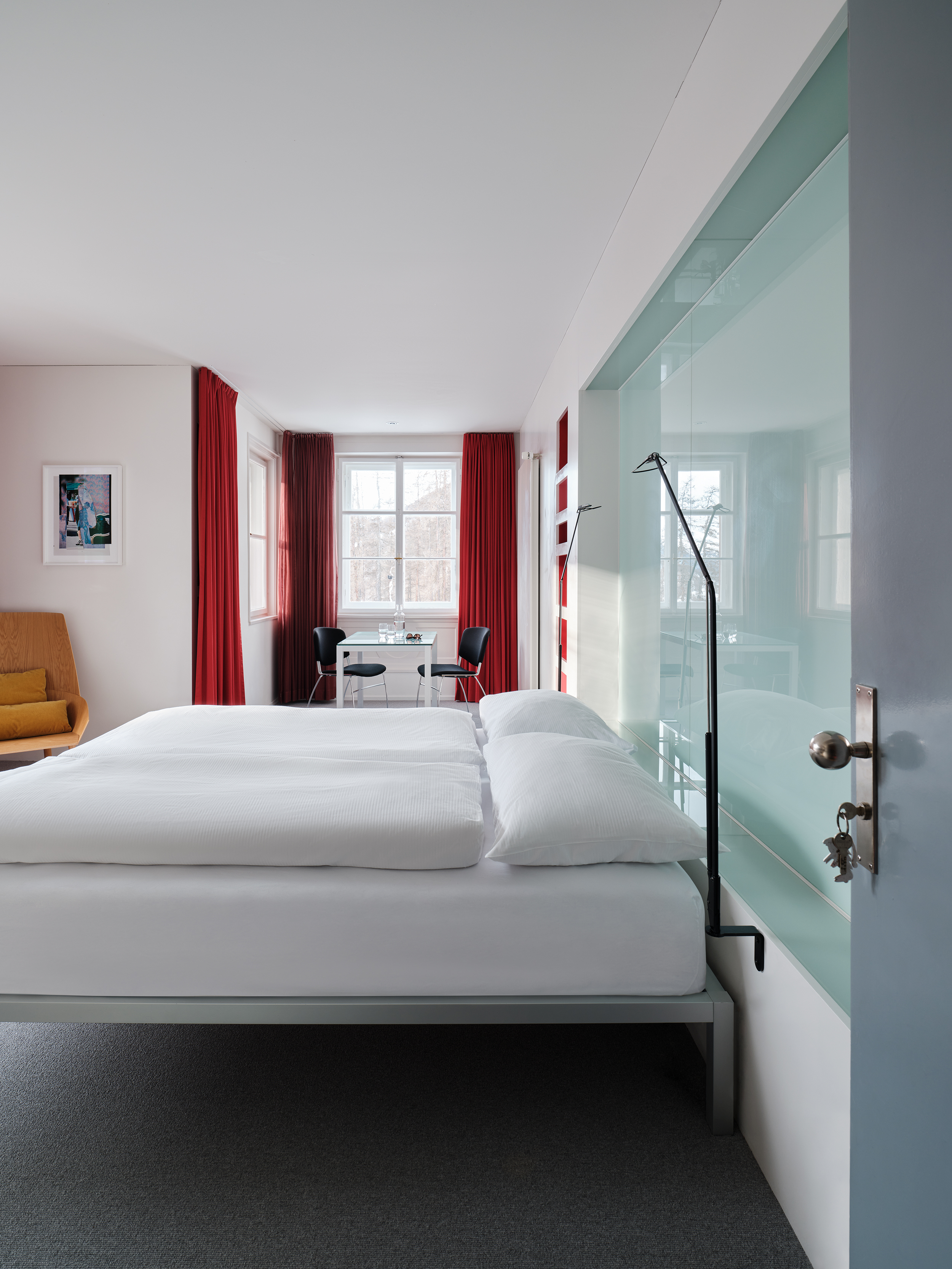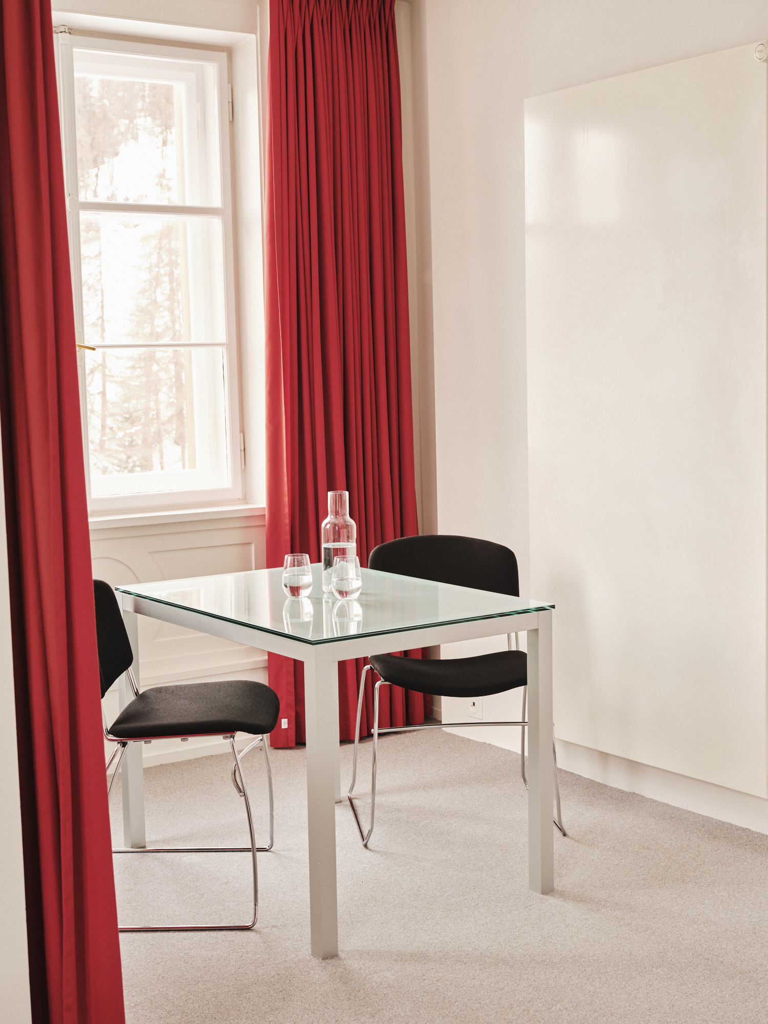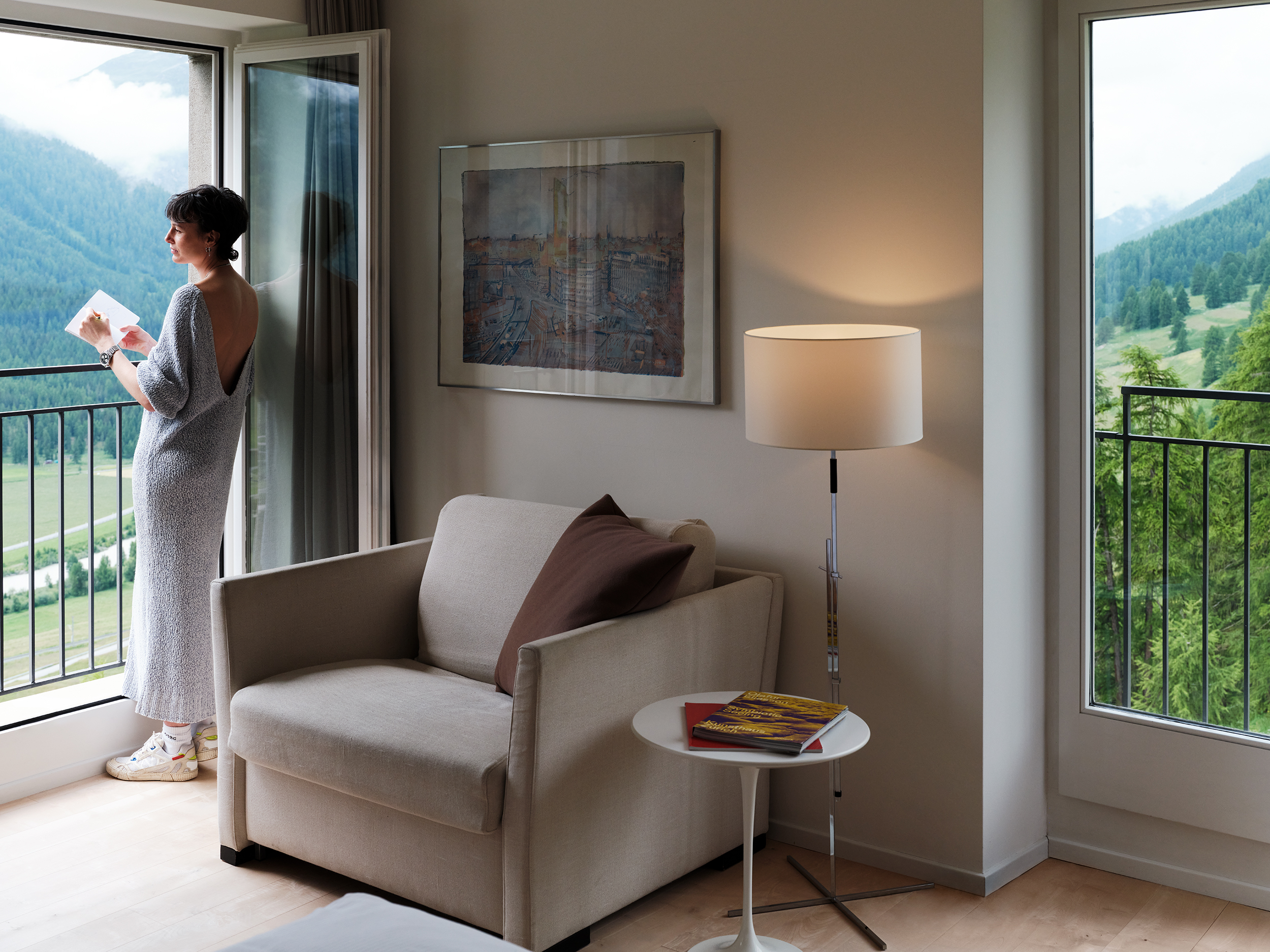 Modernes Design und grossartiger Ausblick: Die 30 m² grossen Superior-Zimmer auf der Südseite des Hotels bieten angenehme Ruhe und einen fantastischen Ausblick ins das Tal und auf die die Engadiner Berge. Die Eckzimmer sind mit ihren zwei Fensterfronten lichtdurchflutet und grosszügig geschnitten. Die Innenaustattung ist modern-urban oder alpin, gestaltet vom St. Moritzer Architekten Hans-Jörg Ruch, oder dem UN-Studio Amsterdam. Panoramablick wahlweise auf das Tal und die Engadiner Berge, den Golfplatz oder die Langlaufloipen von Zuoz.